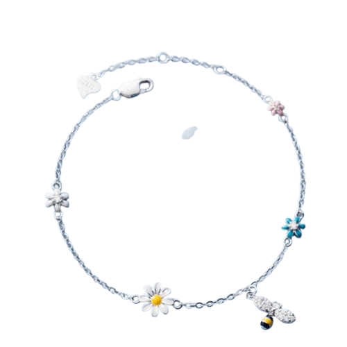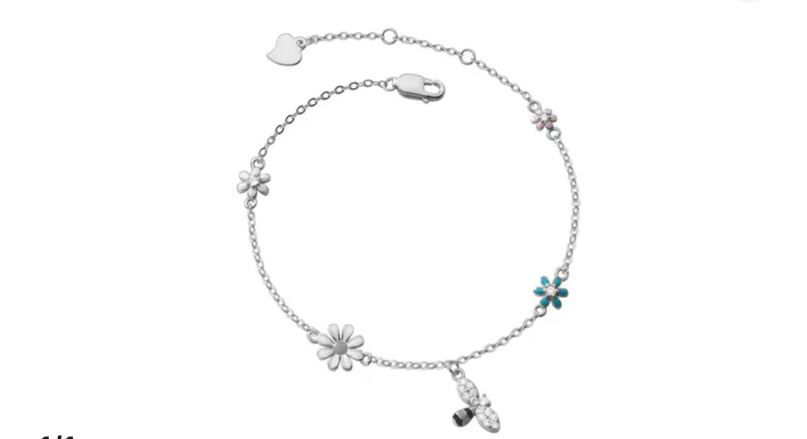 This beautiful piece is made of sterling silver and is adjustable to fit most wrists. It comes with a gorgeous bumble bee and flower charm that is sure to add some personality to your outfit.