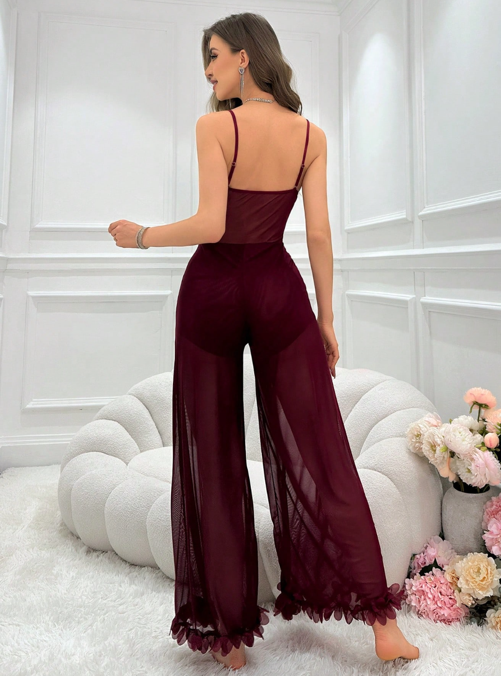 The Lace & Mesh Wide-Leg Jumpsuit is unapologetically sultry, delicately detailed, and designed to make a statement the second you walk in. Featuring a lace-structured bodice with sheer mesh panels and flowing wide-leg trousers, this piece balances romance and confidence like a pro.