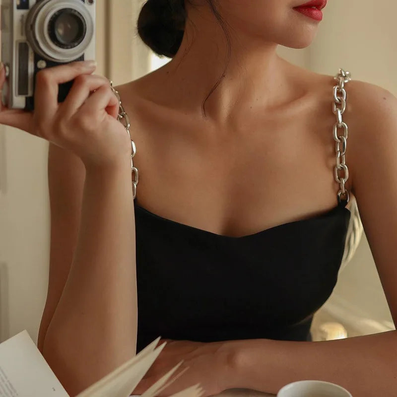 Meet the little black dress that said "let me be iconic" and absolutely delivered! This chain link midi is serving boss energy with a side of "yes, I know I look incredible and so does everyone else."