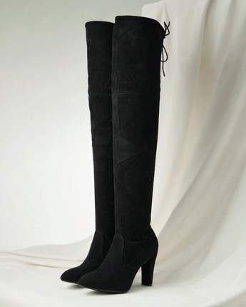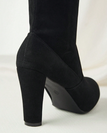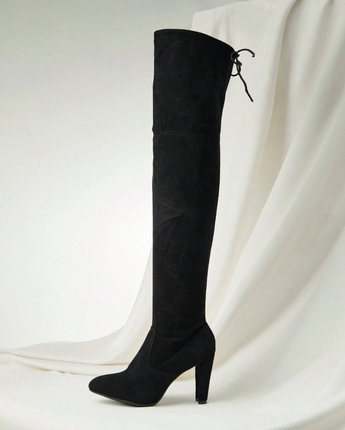 The Chloe Suede Boots feature a sleek over-the-knee silhouette, soft suede finish, and a sturdy heel that gives you height without ruining your night. Elegant, powerful, and slightly intimidating. As they should be.