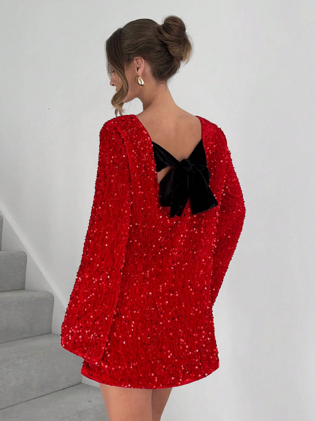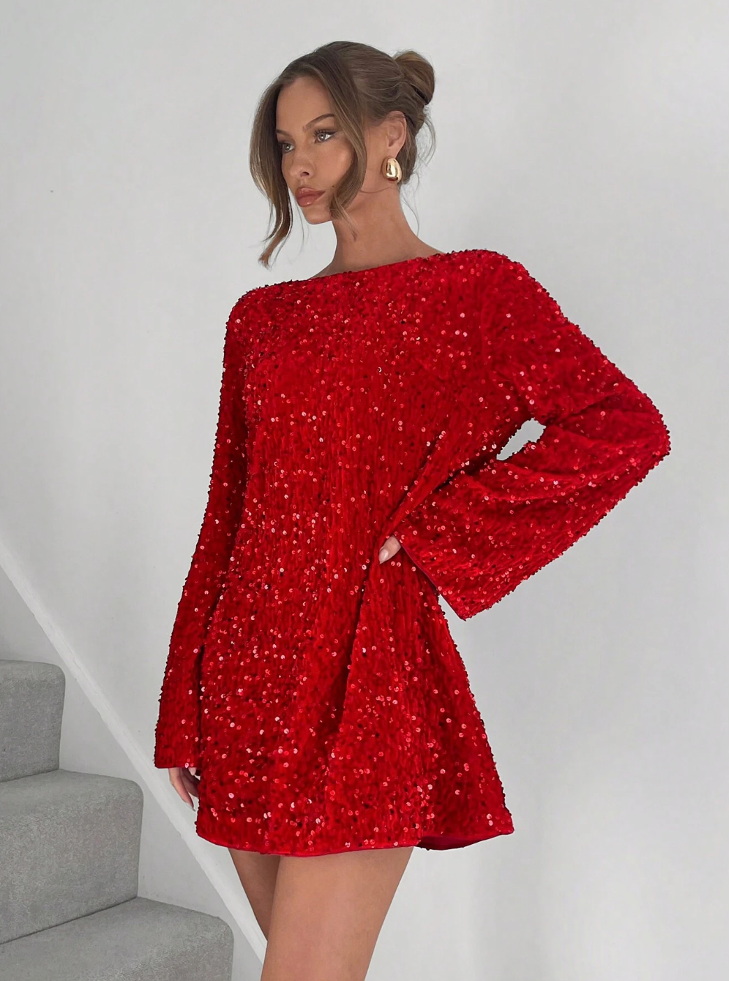 The Mona Sparkle Dress is drenched in shimmering red sequins that catch every light, every camera flash, every jealous side-eye. It’s bold, glam, festive and dangerously flattering — basically the ultimate red sequin mini dress moment.