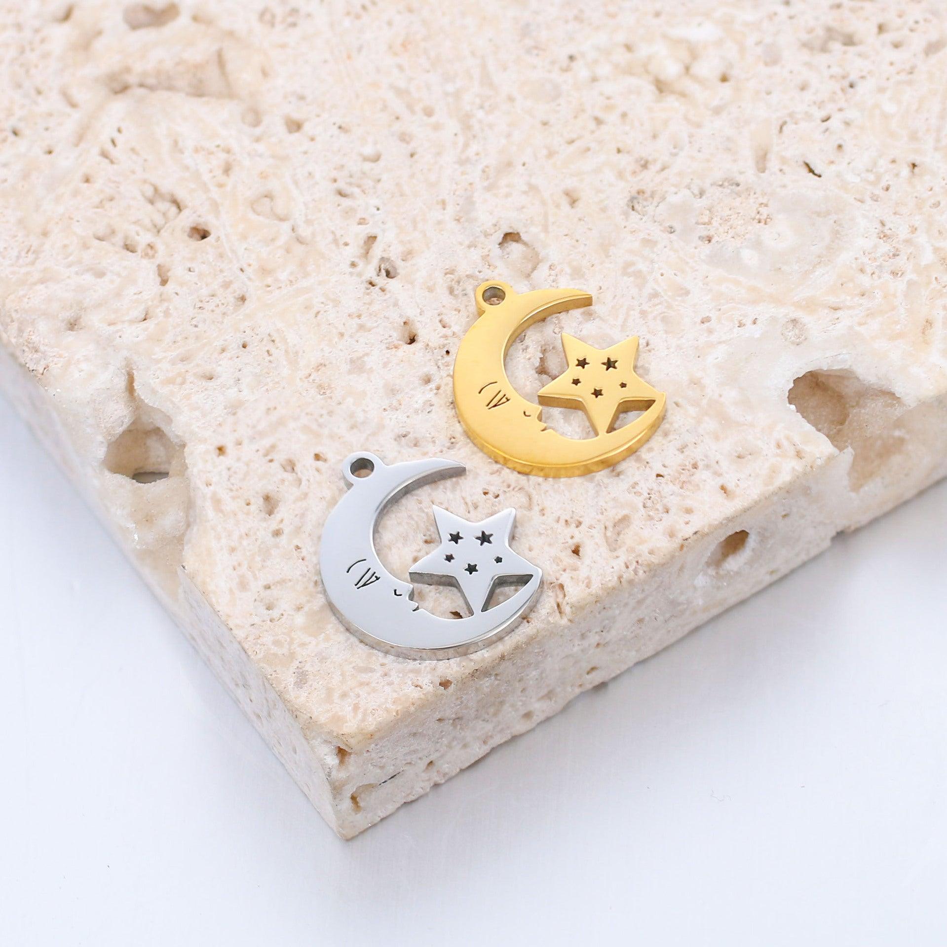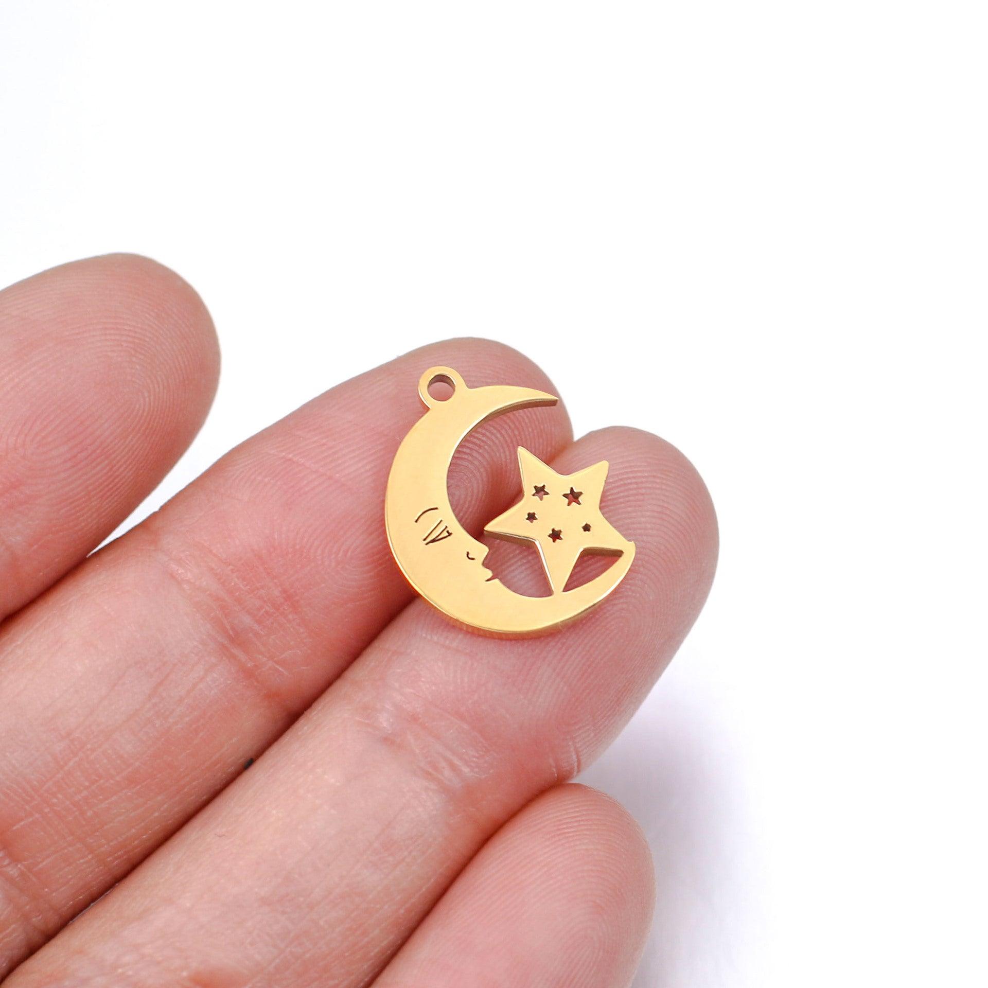 Moon & Star Necklace Charm / Stainless Steel