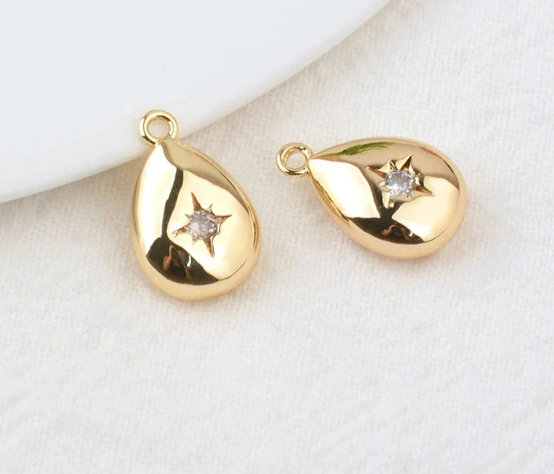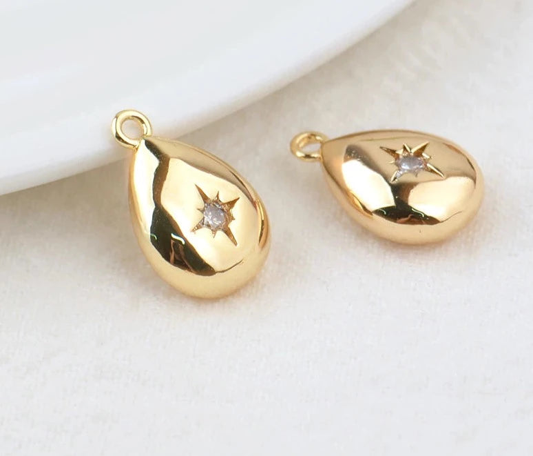 This glittery teardrop-shaped charm is made from a high quality zircon stone and 24K gold plated, so it will last you for years to come.
