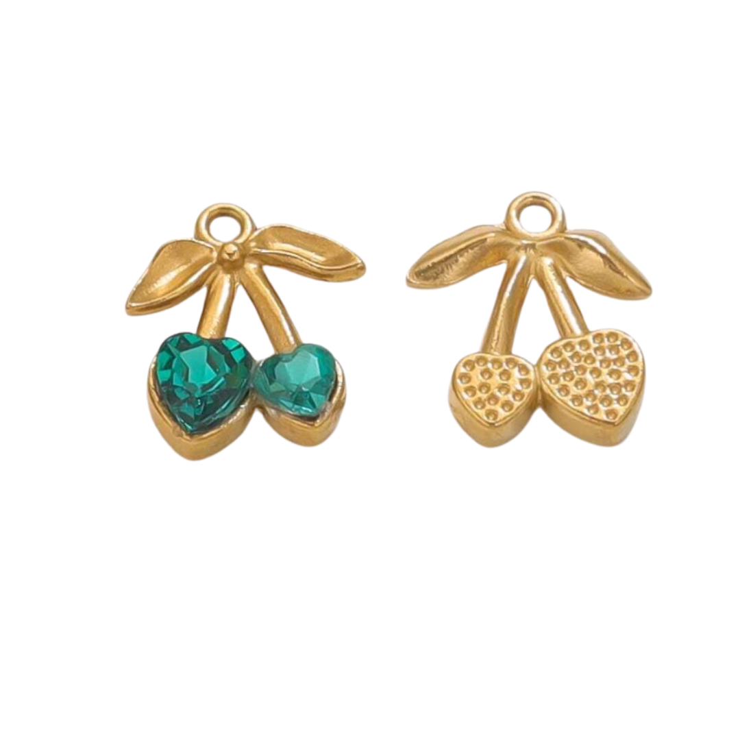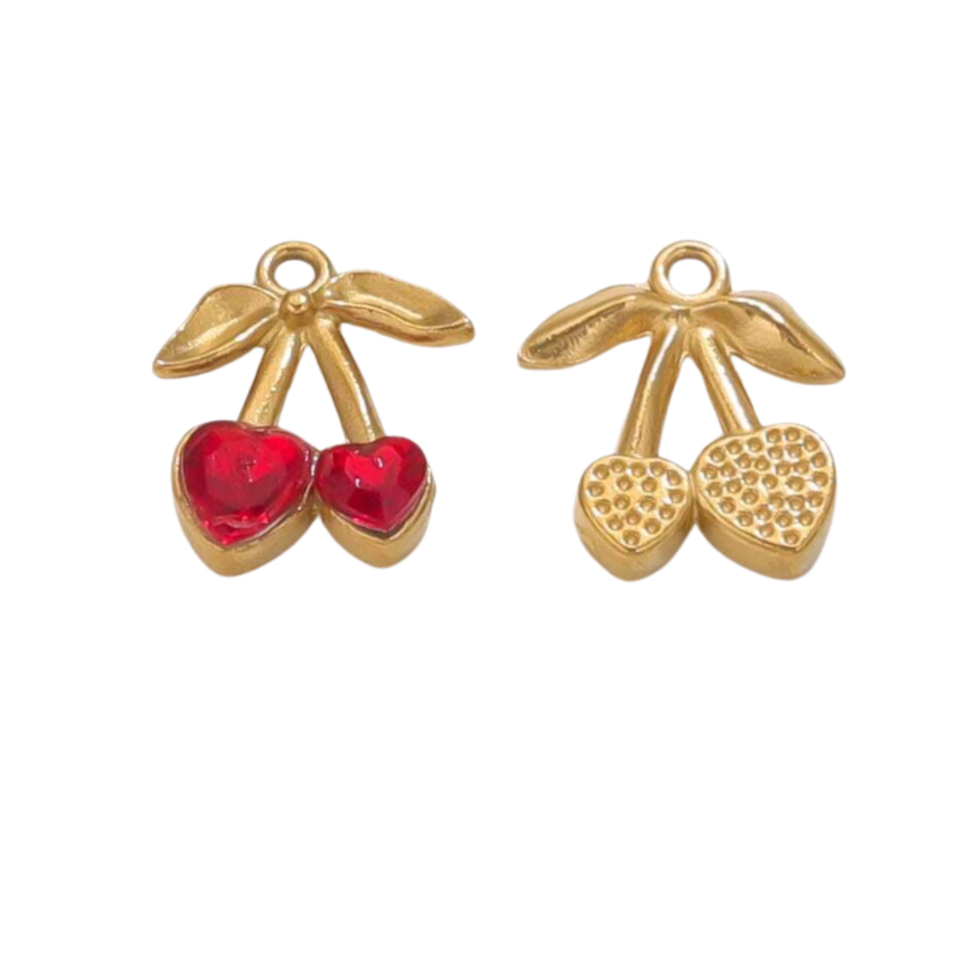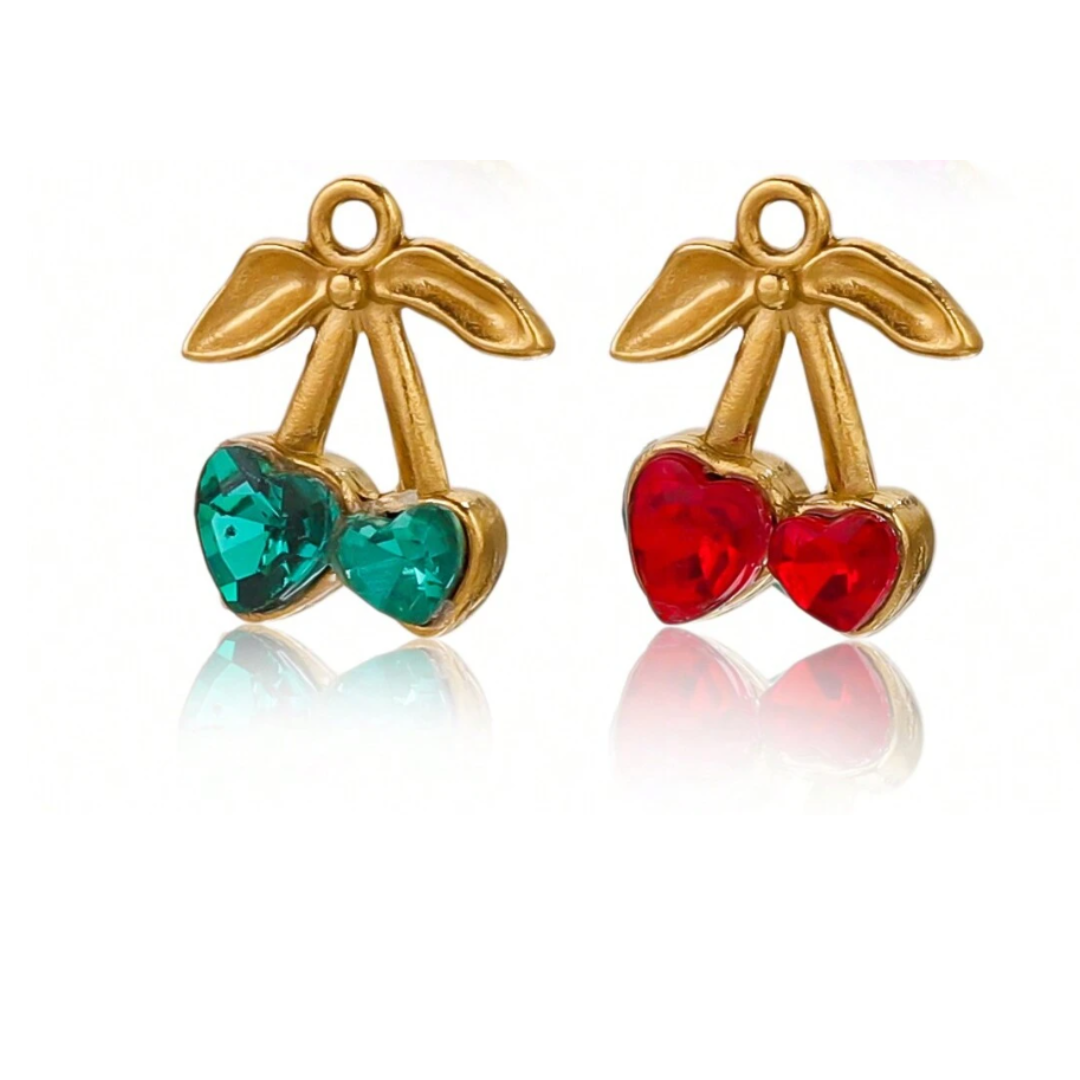 Ready to add some serious sweet sass to your style? Meet The Crystal Heart Cherry Charms in 18K Gold Plated perfection!