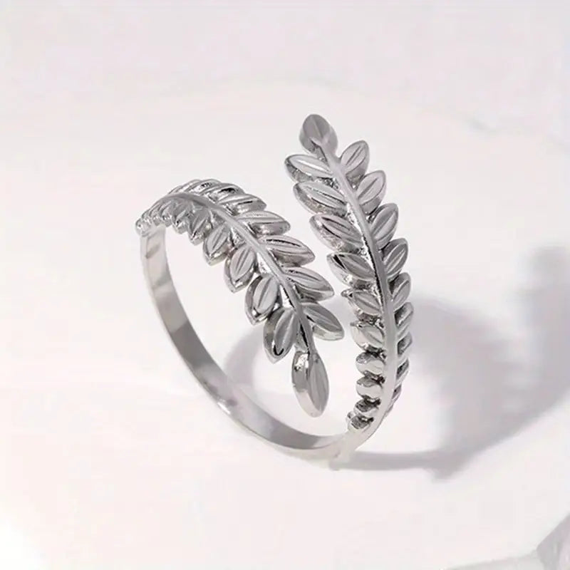 These adjustable rings, available in both gold and silver, feature a delicate laurel leaf pattern that adds a touch of sophistication to any outfit.