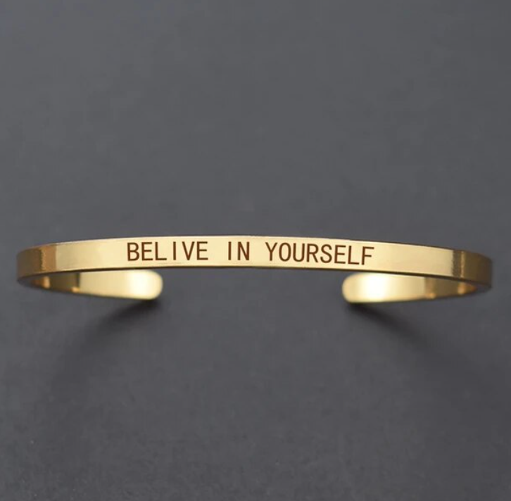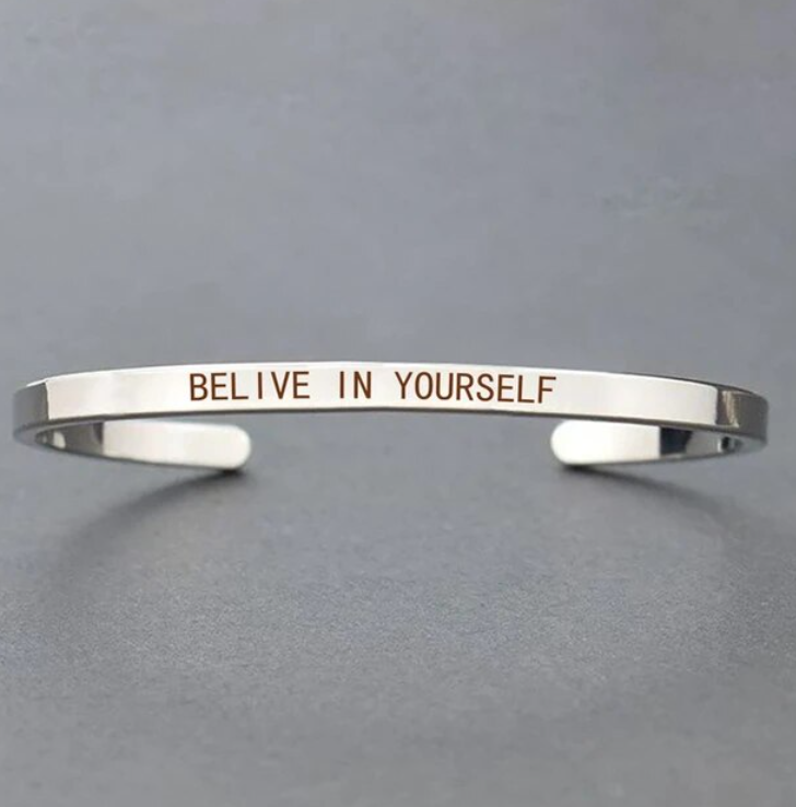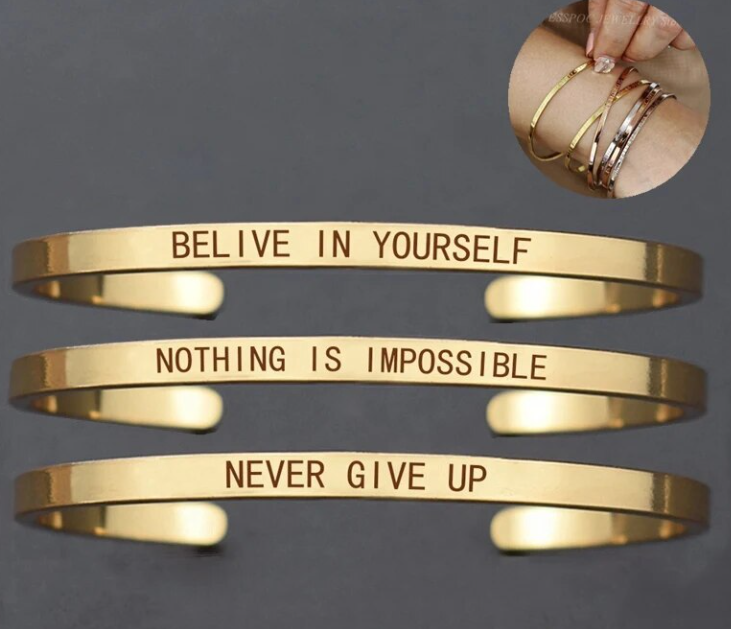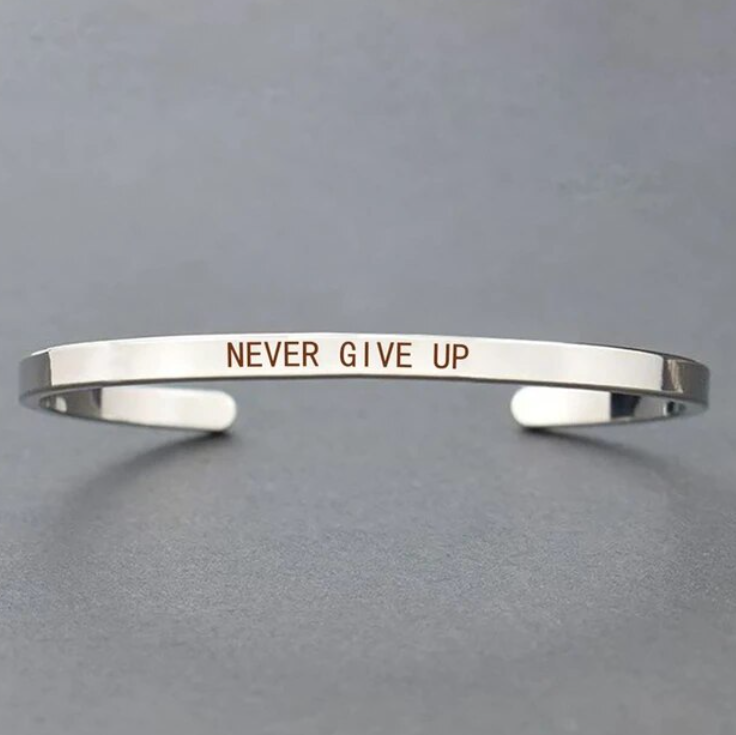 Engraved with empowering messages like "Never Give Up" and "Believe in Yourself," these adjustable bands cater to your style and your spirit.
