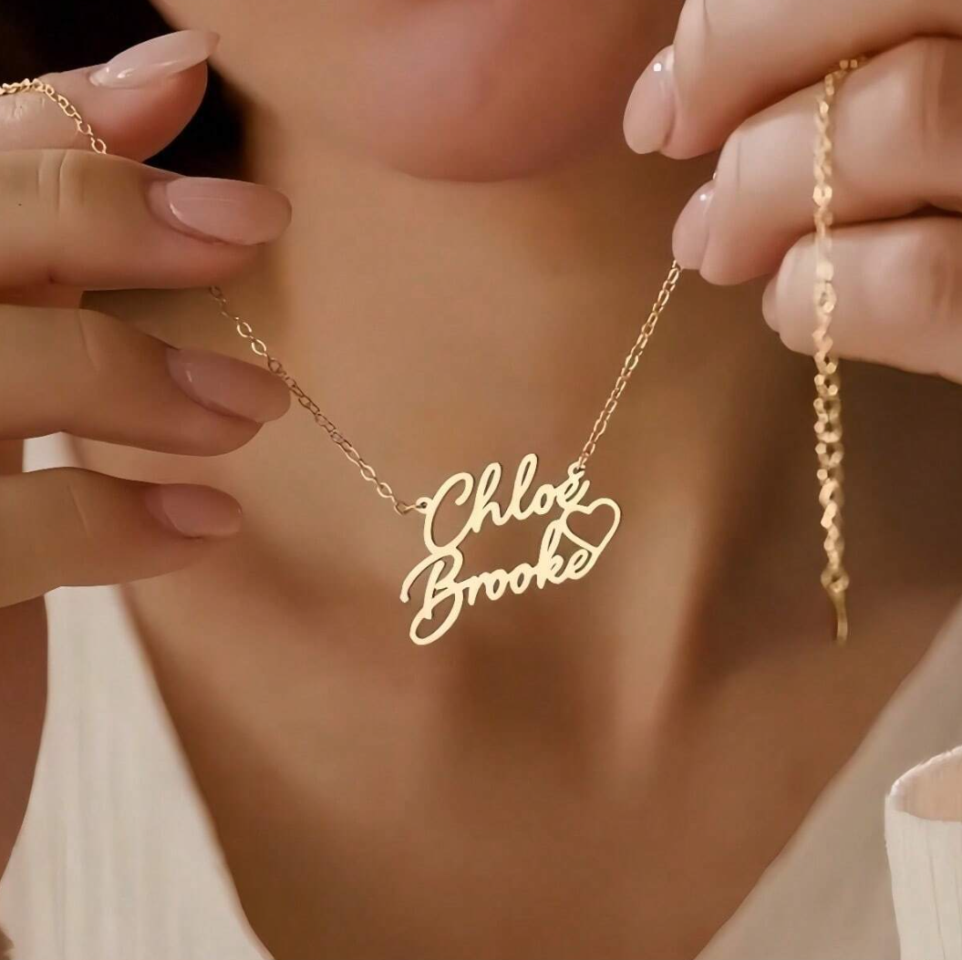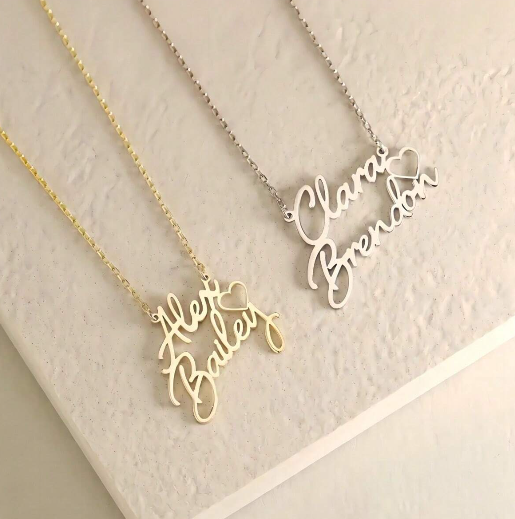 Crafted from high-quality stainless steel, this necklace offers both elegance and durability. Choose between silver or gold, and personalize it with two names of your choice.