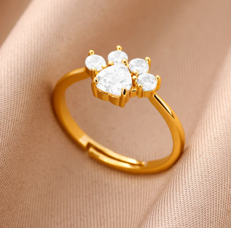 Crafted with care, these 18K gold plated rings feature a sparkling crystal paw on the front, adding a touch of elegance to your style. The adjustable size ensures a perfect fit, while the waterproof and non-tarnish design guarantees lasting beauty.