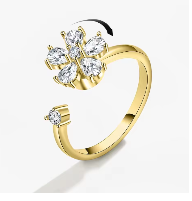 Feeling fidgety? The Derya Flower Spinning Ring is your stylish solution!