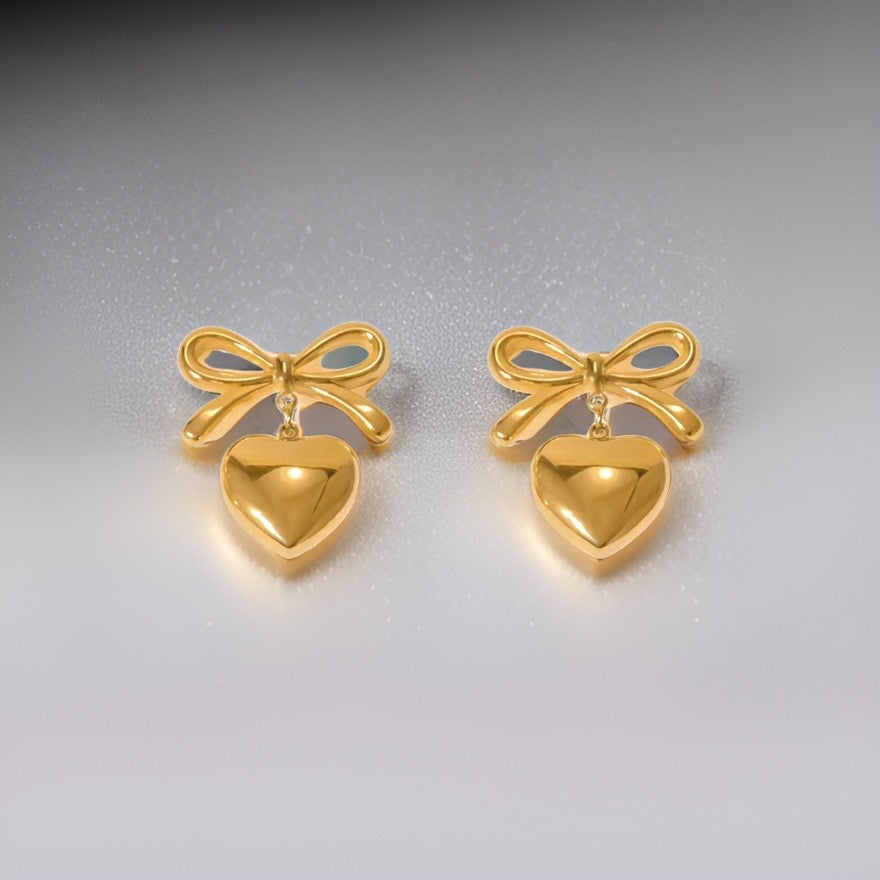 Keres Bow & Heart Earrings / 18K Gold Plated
