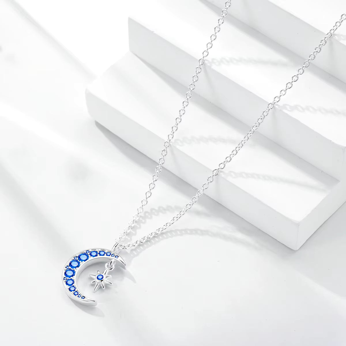 The Blue Moom & Star Necklace / 925 Sterling Silver
