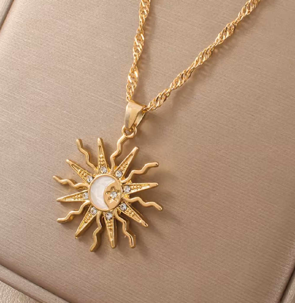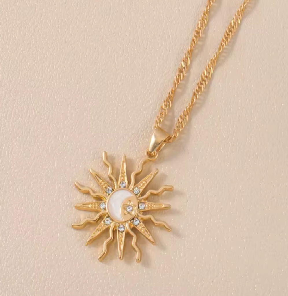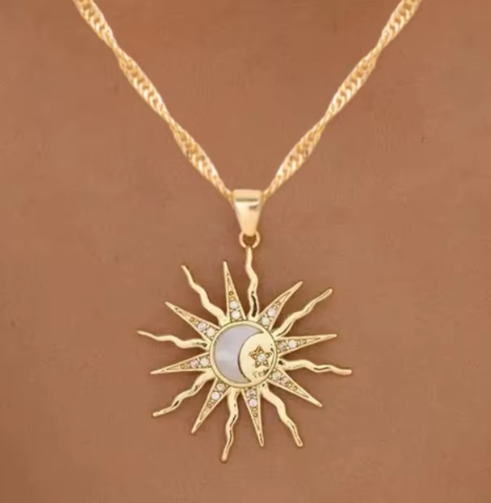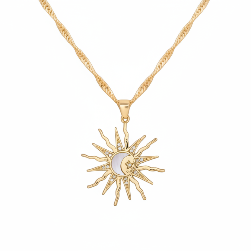 Embrace celestial elegance with The Celeste Sun & Moon Pendant, a stunning piece that captures the harmony of day and night.