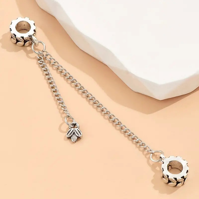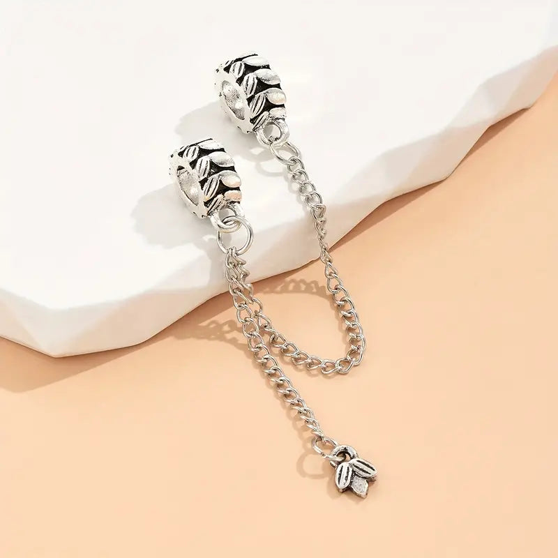 Designed with exquisite craftsmanship, this safety chain charm features delicate laurel leaf patterns on its round charms.