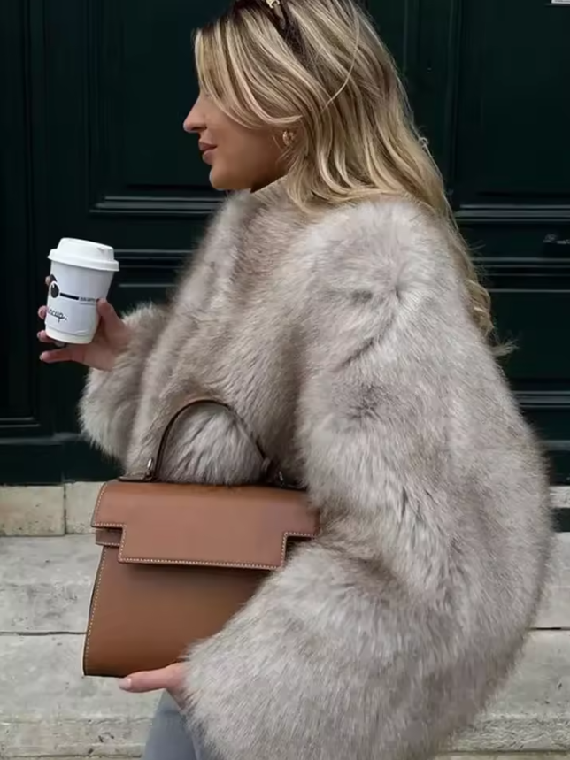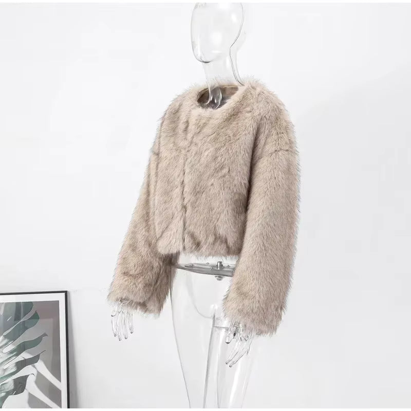 Indulge in ultimate luxury with the Lila Fluffy Faux Fur Coat, featuring an incredibly soft and voluminous texture that makes a bold fashion statement. This cropped silhouette combines cozy warmth with high-fashion appeal, perfect for elevating any outfit from casual to extraordinary.
