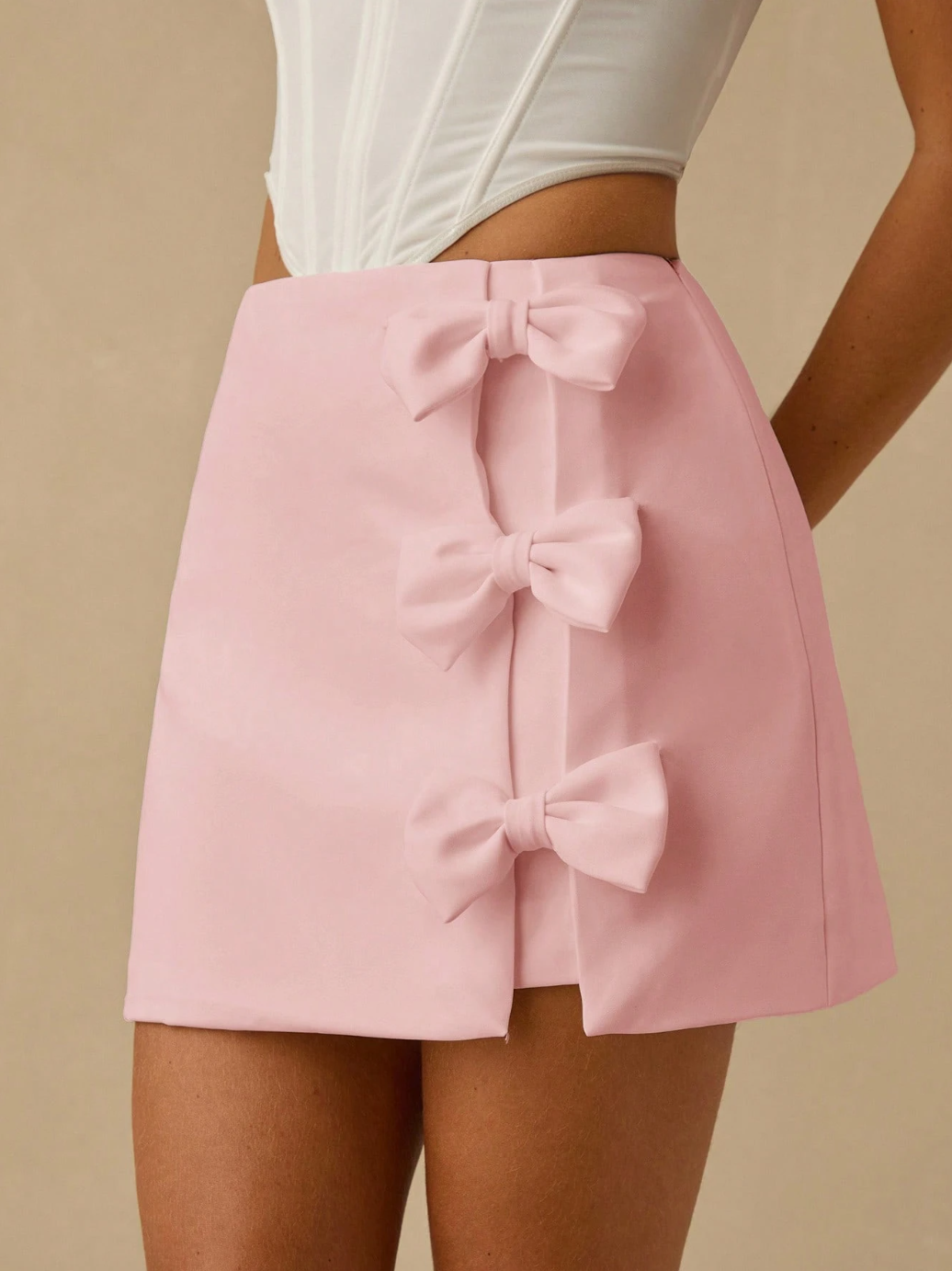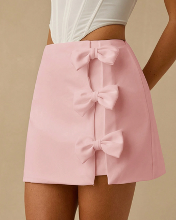 The Pink Bow Mini Skirt is sweet, playful, and dangerously flattering, featuring a structured mini silhouette with statement bow detailing that does all the talking.