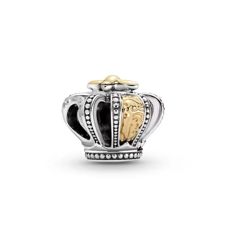 This exquisite charm features a beautiful crown design adorned with delicate gold accents. Crafted from high-quality alloy, it exudes an air of regal elegance.