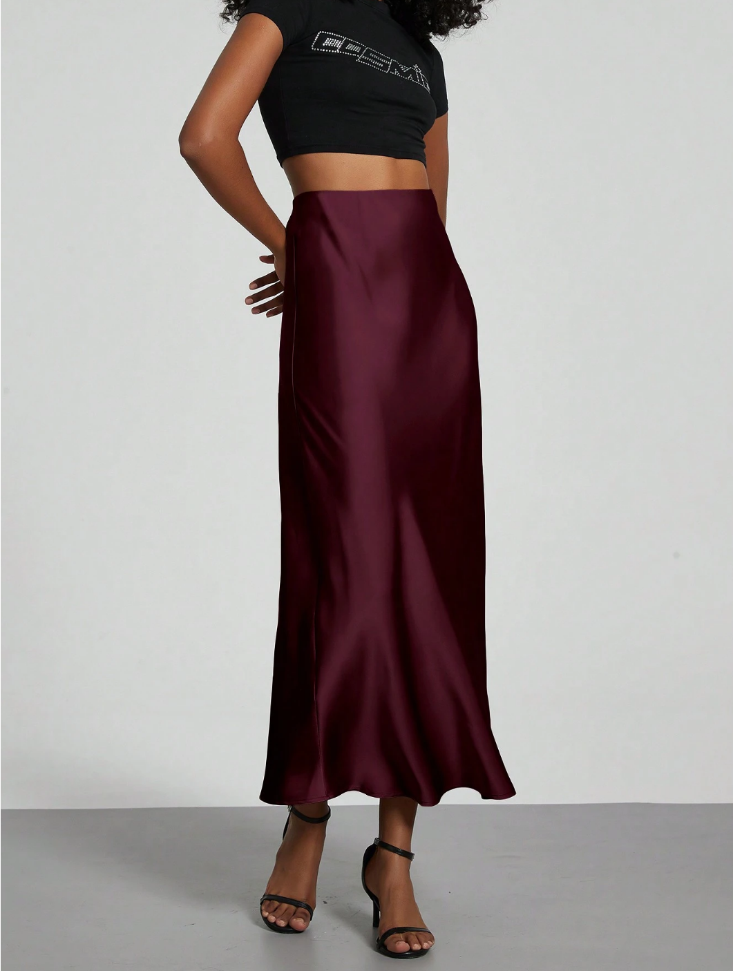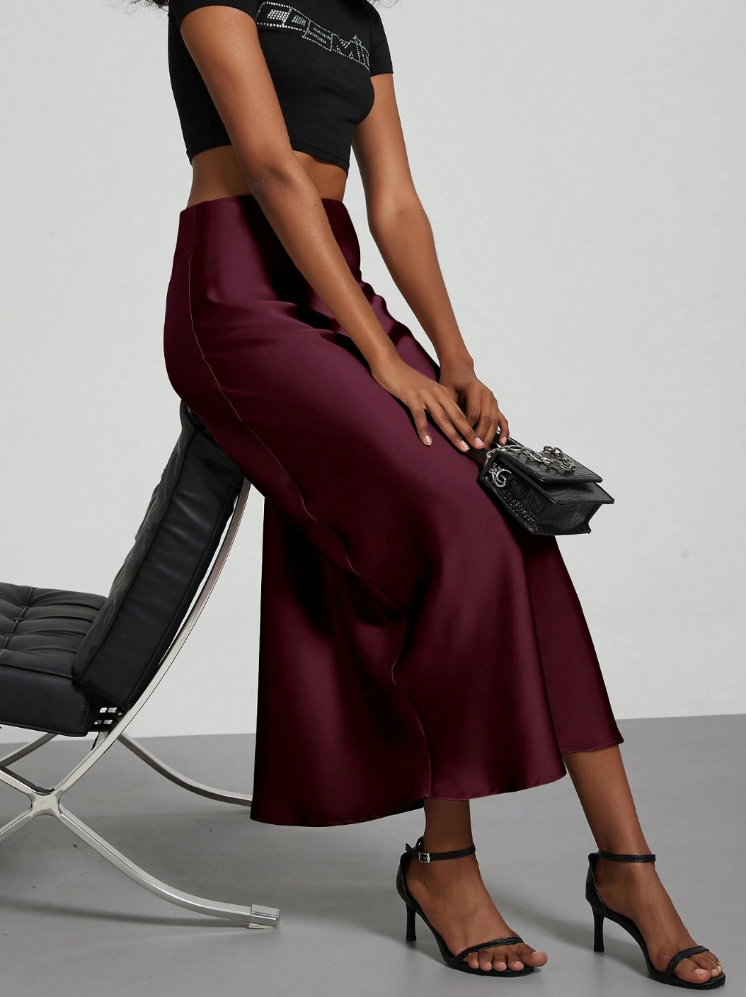 Where luxury meets effortless style, The Satin Skirt is your new wardrobe staple for every season. Crafted from silky satin that glides against the skin, this straight A-line silhouette brings that perfect mix of polish and femininity. The mid-waist design flatters every figure, while the fluid drape adds a touch of movement that catches the light with every step.